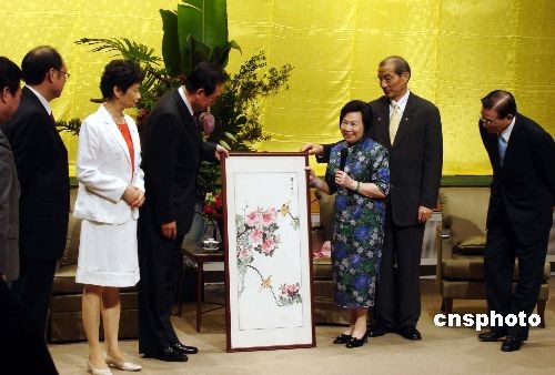 十一月三日下午,海協(xié)會會長陳云林前赴臺泥大樓,拜會已故;鶗麻L辜振甫的遺孀辜嚴倬云女士。陳云林受中華全國婦聯(lián)所托,邀請辜嚴倬云女士再次訪問大陸。中新社發(fā) 洪少葵 攝