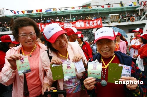 2008年11月8日上午11:30,由馬祖經(jīng)貿(mào)文化交流聯(lián)誼會(huì)理事長(zhǎng)陳雪生先生帶隊(duì),馬祖、金門及臺(tái)灣本島福州鄉(xiāng)親約500人搭乘“臺(tái)馬輪”從臺(tái)灣基隆經(jīng)彎靠馬祖福澳港后抵達(dá)福州港客運(yùn)碼頭。此行目的主要是來榕推介馬祖旅游及赴大陸各地旅游。此舉是兩岸擴(kuò)大“小三通”,特別是11月4日“兩會(huì)”商談簽署有關(guān)協(xié)議后,首次實(shí)現(xiàn)“兩馬”海上客運(yùn)航線延伸至臺(tái)灣本島,對(duì)福州市進(jìn)一步拓展與馬祖直接往來的范圍和層次有重要的意義。同時(shí)又是國臺(tái)辦王毅主任9·8期間在廈門舉行的“海峽西岸經(jīng)濟(jì)區(qū)論壇”上受權(quán)發(fā)布大陸方面五項(xiàng)便利兩岸同胞交往的新舉措之后,臺(tái)胞循“兩馬”航線并對(duì)接臺(tái)灣本島來榕人數(shù)最多的一個(gè)團(tuán)組。馬祖經(jīng)貿(mào)文化交流聯(lián)誼會(huì)理事長(zhǎng)陳雪生先生、副理事長(zhǎng)曹爾忠、陳振清先生等馬祖知名人士也隨船抵達(dá)馬尾。據(jù)悉,截止今年10月,“兩馬”航線已運(yùn)行3782航次,來往旅客達(dá)22.93萬人次。中新社發(fā) 祝敏松 攝