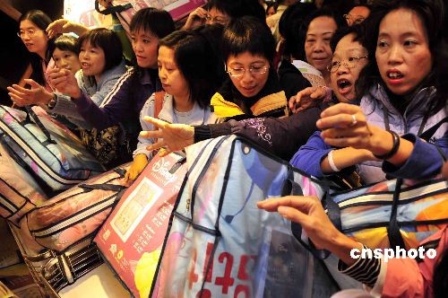 十一月二十日,香港沙田一間百貨公司舉行購物優(yōu)惠日,推出五百多款貨品,以原價(jià)二折發(fā)售,吸引大批市民前往購物。中新社發(fā) 譚達(dá)明 攝