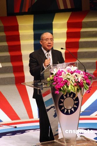 11月22日,中國(guó)國(guó)民黨第十七次全代會(huì)臨時(shí)會(huì)議在臺(tái)北“國(guó)父紀(jì)念館”舉行。圖為會(huì)議中,國(guó)民黨主席吳伯雄以“團(tuán)結(jié)奮起,戰(zhàn)勝逆境”為題致詞。他表示,最近發(fā)生全球金融海嘯,國(guó)民黨要做執(zhí)政團(tuán)隊(duì)的后盾,支持他們突破困境。中新社發(fā) 劉舒凌 攝