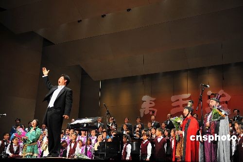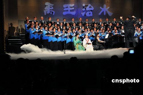 當?shù)貢r間11月30日晚,由硅谷華人軟件專家過客(劉力前)作詞、中國著名作曲家鮑元愷作曲的大型合唱組曲《禹王治水》在圣荷西加州劇院舉行首演。匯聚兩岸三地華人華僑歌唱愛好者的清羽合唱團和游子吟合唱團以及當?shù)貎和铣獔F共同擔綱演出。此曲將于明年4月到中國大陸和臺北巡回演出!队硗踔嗡吠ㄟ^歌頌大禹“平水土,立九州”的功業(yè),溫習中華民族自強不息及堅韌不拔的偉大精神傳統(tǒng),回溯中華文明的源頭。中新社發(fā) 陳鋼 攝