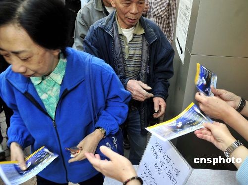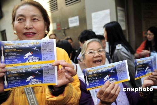 十二月二日早上九時(shí),神舟七號(hào)航天代表團(tuán)的大匯演門票在香港二十一個(gè)地點(diǎn)免費(fèi)派發(fā),每人限取兩張。中新社發(fā) 譚達(dá)明 攝