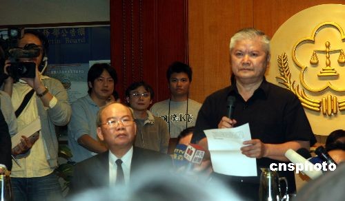 臺(tái)灣“檢察總長(zhǎng)”陳聰明(左一)主持下午的新聞發(fā)布會(huì),特別偵查組發(fā)言人陳云南(右一)向媒體介紹了偵查結(jié)果及長(zhǎng)達(dá)二百零九頁的起訴書基本內(nèi)容,臺(tái)灣檢方依“貪污治罪條例”等罪將陳水扁等十四人提起公訴。