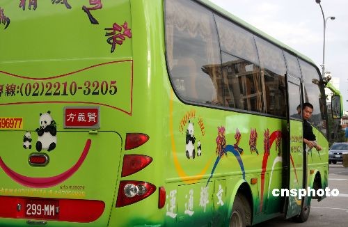 12月26日,一些印有大熊貓圖案的旅游公司客車現(xiàn)身臺(tái)北街頭。中新社發(fā) 陳立宇 攝