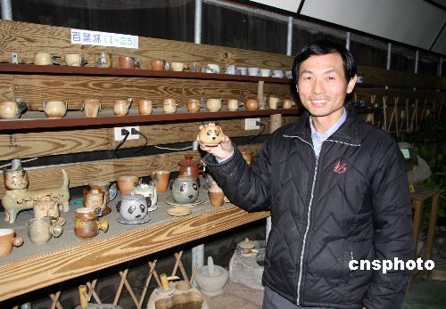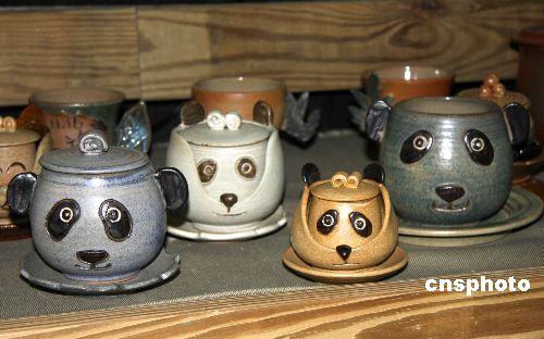 1月3日,臺(tái)北縣深坑鄉(xiāng)杯與壺博物館展示陶藝新作“熊貓杯”。這些作品為該博物館館長吳九巖所創(chuàng)作。中新社發(fā) 陳立宇 攝