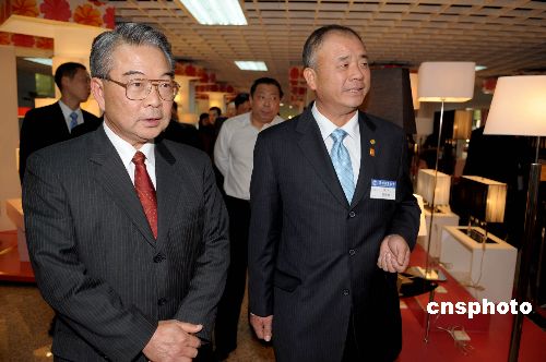 一月七日,臺灣海峽交流基金會副董事長許勝雄(左)一行在深圳參觀臺資企業(yè)立大車料有限公司。中新社發(fā) 陳文 攝