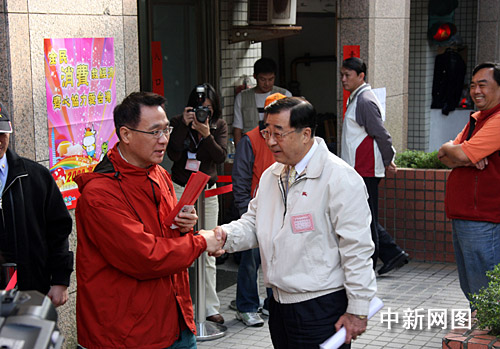 1月18日上午,備受全臺(tái)和外界關(guān)注的消費(fèi)券開始在臺(tái)灣各發(fā)放所發(fā)放。圖為臺(tái)灣內(nèi)政部門主管消費(fèi)券發(fā)放的負(fù)責(zé)人廖了以(右一)今天上午到消費(fèi)券發(fā)放所督導(dǎo)。鼓勵(lì)臺(tái)灣民眾善用消費(fèi)券,積極促進(jìn)內(nèi)需,擴(kuò)大消費(fèi)。陳立宇 攝