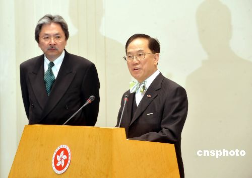 一月二十二日,香港特區(qū)行政長官曾蔭權(quán)在香港中區(qū)政府合署,在經(jīng)濟(jì)機(jī)遇委員會(huì)會(huì)議結(jié)束后與媒體會(huì)面。中新社發(fā) 鄧慶樂 攝