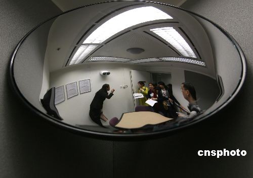 二月八日,工作人員向媒體介紹香港廉政公署的錄影會面室。今年是廉政公署成立三十五周年,為了加深香港市民對反貪工作的認(rèn)識,廉署將在本月舉辦兩個開放日,讓市民參觀廉政公署大樓的部分設(shè)施。中新社發(fā) 武仲林 攝