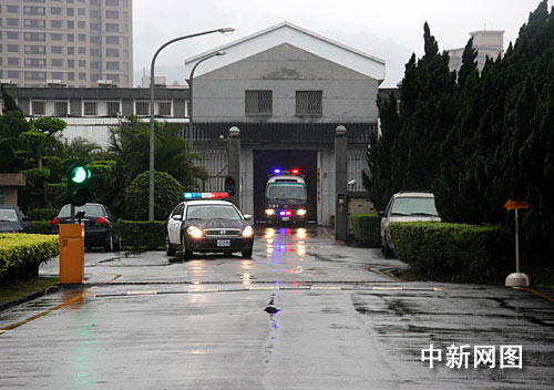 2月26日是臺北地方法院連續(xù)三天庭審陳水扁,進行準備程序庭的最后一天。圖為今天早上八時三十五分許,臺北看守所的鐵門打開,押著陳水扁的囚車在陰雨中準備開出看守所,前往地院出庭。中新社記者 陳立宇 攝