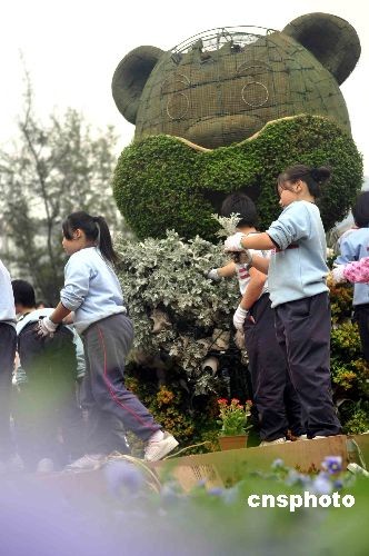 二月二十八日,來自二十間學(xué)校的五百多名學(xué)生,在香港維園協(xié)助鑲嵌大型花壇“森林運動會”花壇。據(jù)悉,今屆花卉展覽展出逾二百個來自香港、內(nèi)地及世界各地參展機(jī)構(gòu)的花卉,以及造型獨特的園林景點及花藝擺設(shè),色彩絢麗,形態(tài)各異。中新社發(fā) 譚達(dá)明 攝