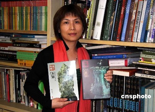 一套共十二冊由北京故宮博物院紫禁城出版社授權(quán)、介紹北京故宮博物院藏寶的書籍,由臺灣藝術(shù)家出版社出版。圖為該出版社的工作人員展示該套書籍中的兩冊。中新社發(fā) 陳立宇 攝
