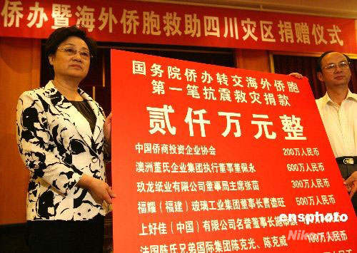 國(guó)僑辦向汶川地震災(zāi)區(qū)轉(zhuǎn)交海外僑胞首批捐款