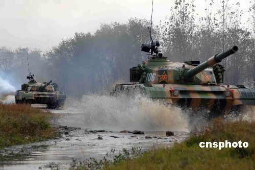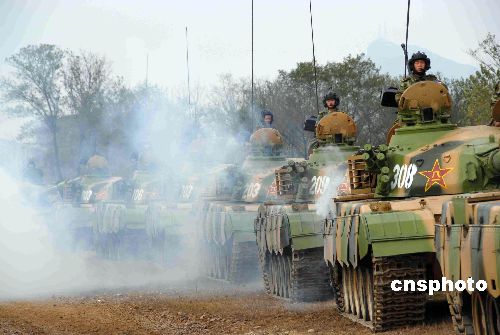10月底,“鐵拳-2007”復雜電磁環(huán)境下機步師實兵檢驗性演習完成電磁對抗,進入實兵交戰(zhàn)階段。圖為裝甲部隊向演習地域集結。中新社發(fā) 周和平 攝