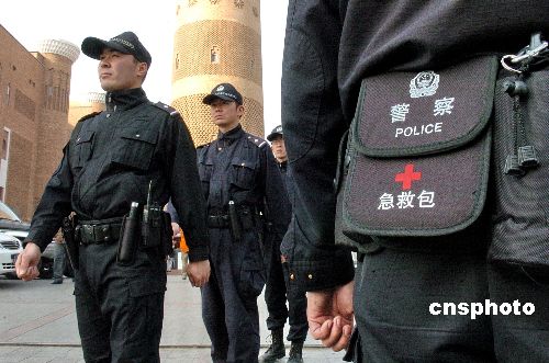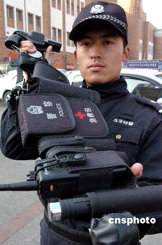 日前,烏魯木齊公安局特警支隊(duì)隊(duì)員身著最新警用裝備在該市國(guó)際大巴扎執(zhí)行巡邏任務(wù)。據(jù)了解,此次該市特警統(tǒng)一更換的新裝備中包括強(qiáng)光手電、催淚噴射器、手銬、伸縮警棍、水壺、對(duì)講機(jī)、警察工作包、急救包等,所有器具均掛在多功能腰帶上,使用起來(lái)更加便捷。新裝備中的急救包中所攜帶的治療高血壓及心臟病的急救用藥和包扎器具即可以應(yīng)對(duì)突發(fā)事件中的急救所用,還可以對(duì)巡邏過(guò)程中市民的突發(fā)病癥做暫時(shí)的急救之用。中新社發(fā) 劉新 攝