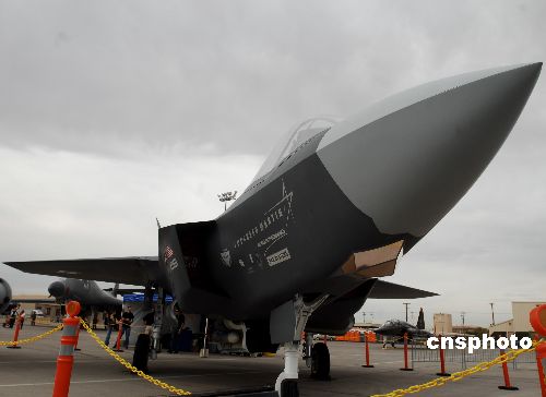 美國十一月中旬在內(nèi)華達州內(nèi)利斯空軍基地舉行紀念空軍成立六十年大規(guī)模飛機展示中,未來主力戰(zhàn)機F-35“閃電2聯(lián)合攻擊戰(zhàn)斗機”的公開亮相最為矚目。這種多國合作研制的新一代隱秘戰(zhàn)術飛機,將更新裝備美國空軍、海軍和海軍陸戰(zhàn)隊,以及英國皇家海軍與皇家空軍等多國部隊。中新社發(fā) 賈國榮 攝