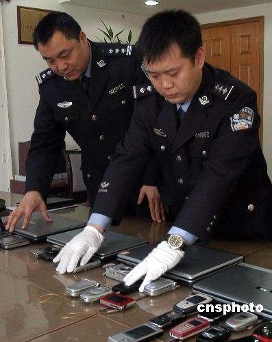 春節(jié)期間,北京西城警方投入上百警力,刑偵支隊(duì)兩線作戰(zhàn),成功破獲節(jié)日期間多起入室盜竊案,先后打掉兩個(gè)特大犯罪團(tuán)伙,抓獲23名嫌疑人,刑事拘留19人。圖為警員清理被盜物品。中新社發(fā) 蘇峰 攝