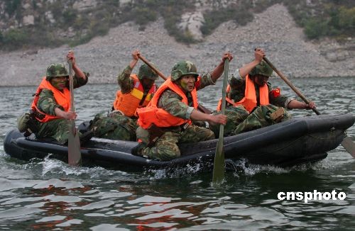10月18日,濟(jì)南軍區(qū)偵察兵動(dòng)態(tài)比武展開。滿臉油彩的偵察隊(duì)員們身負(fù)35公斤戰(zhàn)斗裝具行軍50公里,主要進(jìn)行了夜間行軍、操舟越障、通過雷場(chǎng)、偵察報(bào)知、調(diào)制要圖、山地攀登六項(xiàng)課目考核。中新社發(fā) 崔成俊 攝