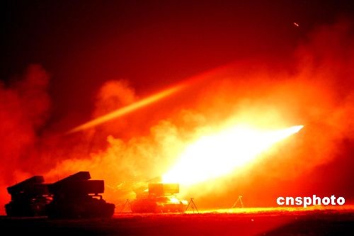10月18日,濟南軍區(qū)某師炮兵團122自行火箭炮營參加夜間實彈射擊考核,取得了優(yōu)秀成績。該團積極探索復(fù)雜條件下火力突擊能力,收效顯著。中新社發(fā) 畢華明