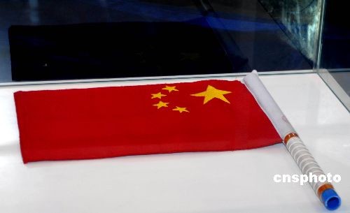 11月4日,在廣東珠海市舉行的“第七屆中國國際航空航天博覽會”上,航天員翟志剛在太空出艙漫游時(shí)揮舞的國旗和所戴的手套,首次與觀眾見面。“神舟”七號飛船軌道艙(正樣備份品)以及"神舟"七號飛船返回艙模型也將展出。中新社發(fā) 楚天行 攝