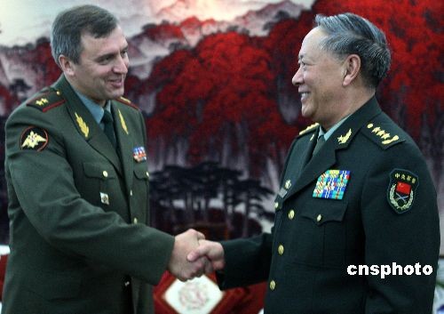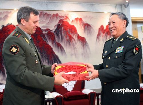 中央軍委委員、中國(guó)人民解放軍總參謀長(zhǎng)陳炳德上將,10月24日下午在北京八一大樓會(huì)見來(lái)訪的俄羅斯武裝力量第一副總參謀長(zhǎng)布魯京中將,雙方在友好的氣氛中進(jìn)行了交談。中新社發(fā) 宋吉河 攝
