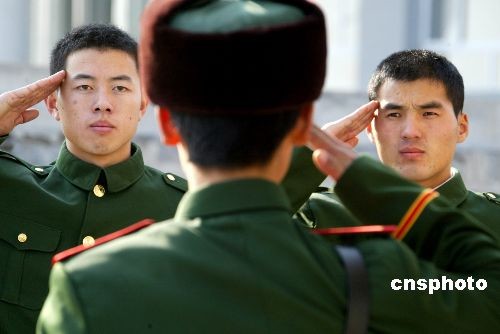 遼寧邊防總隊(duì)丹東邊防支隊(duì)退伍老兵在軍營告別儀式上,向在中朝邊境值勤的戰(zhàn)友行軍禮道別。