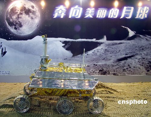 7月9日,腳踩6個輪子,站在“月球”表面,頭頂CCD相機(jī)四周轉(zhuǎn)動,巡視到的場景在電腦上即時傳送……在上海航空展中,“月球巡視探測器”表現(xiàn)不凡。據(jù)了解,經(jīng)過層層審批才得以在公眾前亮相的月球車,將于2012年“嫦娥工程”實現(xiàn)“落地”計劃后登陸月球。中新社發(fā) 紹常 攝
