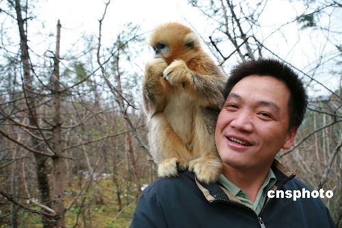 背景資料:神農架金絲猴為四川金絲猴的亞種,個體碩大,金毛閃閃,毛發(fā)偏金紅色,它們生活在海拔1800米到2400米的高山上,飲清泉,食葉果,生存環(huán)境要求清新潔凈。金絲猴的手指與人類接近,但指甲是紫色。金絲猴組織一夫多妻的家庭,由多個家庭構成部落。另外還有全雄單元,全雄單元是它們的軍事組織,站崗放哨,保衛(wèi)金絲猴部落,負責偵察探險,策劃組織遷徙。