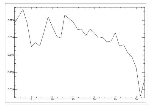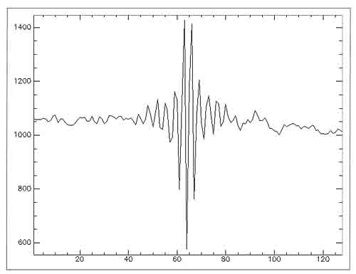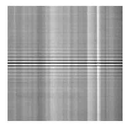 圖1、干涉圖(橫軸為空間像元,縱軸為干涉曲線采樣點數(shù),本圖是右圖從上向下第一行對應(yīng)干涉圖)