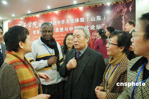 12月16日至18日,由中國(guó)國(guó)家漢辦主辦的全球孔子學(xué)院院長(zhǎng)研修班中華文化體驗(yàn)暨首屆“孔子思想與中華文化論壇”在山東大學(xué)舉行;顒(dòng)期間,來(lái)自18個(gè)國(guó)家34個(gè)孔子學(xué)院的44名外方院長(zhǎng)赴孔子故里——山東曲阜,參觀考察了孔府、孔廟和孔子研究院,體驗(yàn)中華文化,并出席首屆“孔子思想與中華文化論壇”,聆聽山東大學(xué)儒學(xué)研究中心著名教授丁冠之和傅有德教授主講的《孔子,我們共同的老師》、《論言說(shuō):中西差異及其根源》的演講。背景資料:孔子學(xué)院是中外合作建立的非營(yíng)利性教育機(jī)構(gòu),其宗旨和使命是增進(jìn)世界人民對(duì)中國(guó)語(yǔ)言和文化的了解,發(fā)展中國(guó)與外國(guó)的友好關(guān)系,促進(jìn)世界多元文化發(fā)展,并以東方圣人孔子的名字命名。從2004年開始,中國(guó)已在64個(gè)國(guó)家和地區(qū)建立210所孔子學(xué)院(包括孔子課堂),其中125所已開班授課。此外,還有61個(gè)國(guó)家的200多個(gè)機(jī)構(gòu)提出開辦申請(qǐng)。中新社發(fā) 金云 攝