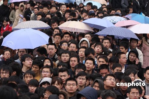 3月21日上午,畢業(yè)生進(jìn)入會場。當(dāng)日,東北五校2008屆畢業(yè)生春季供需見面會在哈爾濱工業(yè)大學(xué)體育館舉行,350余家用人單位參加見面會,萬余學(xué)子涌入會場求職。