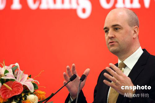 瑞典首相賴因費(fèi)爾特北京大學(xué)發(fā)表演講