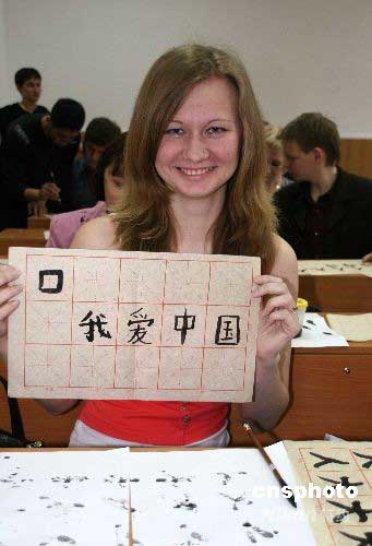 5月7日,應(yīng)俄羅斯布拉戈維申斯克市國立師范大學(xué)孔子學(xué)院邀請,黑河學(xué)院的兩位書法教師到孔子學(xué)院,向俄羅斯學(xué)生講解并傳授中國傳統(tǒng)書法藝術(shù)。據(jù)悉,此次活動是為慶祝俄羅斯布拉戈維申斯克市國立師范大學(xué)孔子學(xué)院成立一周年而舉辦。中新社發(fā) 邱齊龍 攝