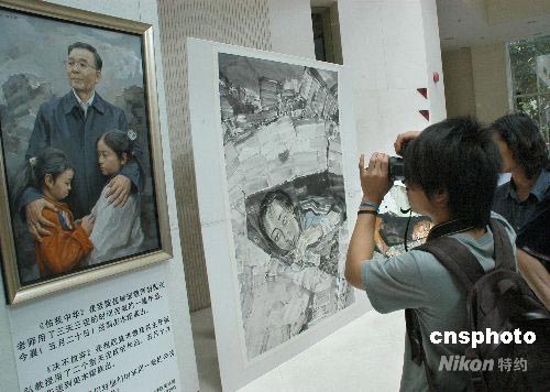 5月23日,“心系汶川·畫的慰問——廣州美術(shù)學(xué)院師生美術(shù)作品特別展”在廣州美術(shù)學(xué)院美術(shù)館展出,638件作品是該校離退休老藝術(shù)家、在校師生和畢業(yè)生等為四川汶川大地震災(zāi)區(qū)捐出的力作,義賣后款項(xiàng)將全部支援地震災(zāi)區(qū)。中新社發(fā) 羅仰明 攝