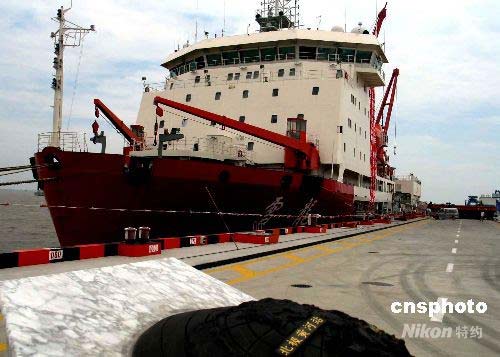 7月11日,身披全新白色“戰(zhàn)袍”的中國(guó)“雪龍”號(hào)預(yù)定上午10時(shí)從浦東外高橋中國(guó)極地考察國(guó)內(nèi)基地專用碼頭離“家”奔赴北極,執(zhí)行中國(guó)第三次北極科學(xué)考察任務(wù)。此前,世界首個(gè)極地考察船專用碼頭——中國(guó)極地考察國(guó)內(nèi)基地碼頭,在上海正式通過(guò)竣工驗(yàn)收并交付使用。這標(biāo)志著中國(guó)極地考察船徹底結(jié)束多年漂泊無(wú)“家”的歷史,擁有了自己的母港。中新社發(fā) 陸從兵 攝
