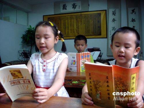 7月14日,孩子們?cè)谔K州一家私塾學(xué)習(xí)古文。暑假期間,蘇州的一些私塾開設(shè)暑期班,教孩子們學(xué)習(xí)中國(guó)古典文學(xué),以培養(yǎng)孩子的文化底蘊(yùn)、陶冶情操。中新社發(fā) 王建康 攝