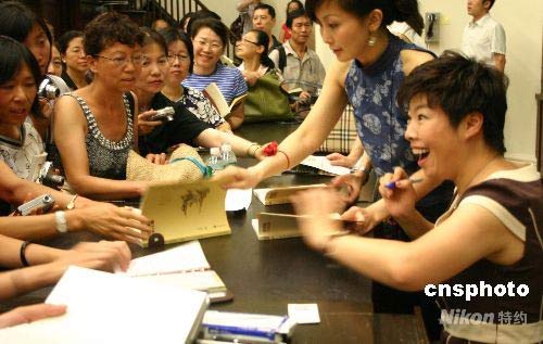 北京師范大學(xué)教授于丹20日在美國紐約哥倫比亞大學(xué)舉行講座,吸引數(shù)百“于丹迷”到場。圖為于丹講座結(jié)束后為“于丹迷”們簽名留念。中新社發(fā) 李靜 攝