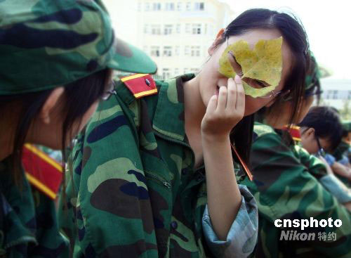全國各高校新生一開學(xué)便開始大學(xué)“第一堂課”——軍訓(xùn)。揚(yáng)州大學(xué)文學(xué)院針對194名“90后”大一新生,提出了“快樂軍訓(xùn)”的口號,除了為期10多天的正常軍事訓(xùn)練外,學(xué)院還開展了趣味游戲、“軍花”評比、內(nèi)務(wù)競賽等活動,為新生的軍訓(xùn)生活增添了一份樂趣,同時促進(jìn)彼此間的認(rèn)識和了解。中新社發(fā) 陳中秋 攝