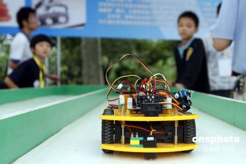 9月18日,第十屆中國(guó)科協(xié)年會(huì)科普主題廣場(chǎng)活動(dòng)在鄭州綠城廣場(chǎng)舉行。當(dāng)日鄭州中學(xué)生在測(cè)試機(jī)器人的行走情況。中新社發(fā) 慎重 攝