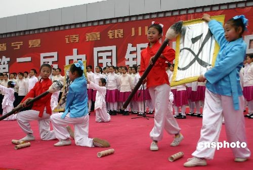 2008年11月12日上午,“回歸詩教傳統(tǒng)、重溫訓(xùn)蒙養(yǎng)正——第二屆中國銀川音樂詩歌節(jié)”在寧夏首府銀川開幕。 本屆詩歌節(jié)以“和諧寧夏、詩意銀川”為主題,以“喚醒詩教、訓(xùn)蒙養(yǎng)正”為主要內(nèi)容。活動主辦方希望以誦讀表演的形式,通過誦讀中華經(jīng)典詩文,傳播民族優(yōu)秀文化,展示中國傳統(tǒng)詩教文化的風(fēng)采和詩歌的魅力。中新社發(fā) 蘆河 攝