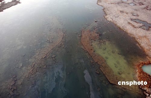 11月21日,京杭運河山東臺兒莊段明朝古運河船閘閘址。近日,一座明朝時期的古運河船閘在京杭運河山東臺兒莊段進行河道疏浚工程時被發(fā)現(xiàn)。這座古船閘全部由條狀塊石和大塊黑磚壘砌,船閘最窄處有八米,反映出當(dāng)時漕運繁忙景象。據(jù)考證船閘修建于明朝萬歷年間,是明代泇運河上的頓莊船閘,是棗莊段運河(泇運河)的八閘之一,距今400多年。中新社發(fā) 高啟民 攝