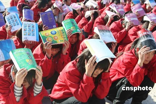 圖:邢臺(tái)300名學(xué)生演練“逃生”