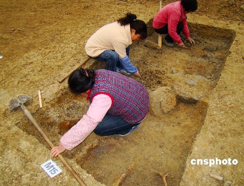 3月4日,成都市文化考古隊(duì)目前在成都郊區(qū)雙流華陽發(fā)掘出二十六座漢代、唐宋時(shí)期古墓。目前該古墓群正在進(jìn)行先期發(fā)掘,已出土了數(shù)枚漢代王莽時(shí)期用過的“貨布”、“貨泉”等古錢幣。其中漢代早期土坑墓為十座、磚室墓八座;唐、宋時(shí)期磚室墓八座。圖為工作人員正在對(duì)古墓進(jìn)行發(fā)掘。中新社發(fā) 王萌 攝