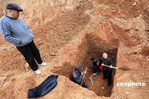 3月11日,安徽淮北市淮北商場建筑工地,考古人員正在對古漢墓進(jìn)行發(fā)掘。據(jù)考古人員介紹,截至目前,已發(fā)現(xiàn)兩漢時期的磚室和土坑墓葬30座,清理出古墓葬6座,出土漢代玉器、青銅器和陶器50余件,這些出土文物對研究漢代的墓葬風(fēng)俗提供了實(shí)物依據(jù)。中新社發(fā) 謝正義 攝