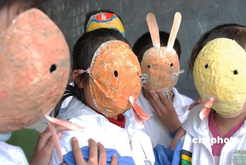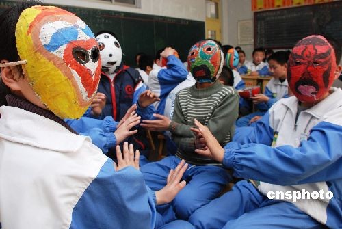 3月16日,山東鄒平縣實(shí)驗(yàn)中學(xué)的學(xué)生用自制的面具表演校園生活自編劇。學(xué)生們用舊報(bào)紙?jiān)诔錃鈿馇蛏辖?jīng)過糊紙、描彩、勾畫、裁切等步驟自制個(gè)性面具,并進(jìn)行展示評比,以小組為單位,以學(xué)生身邊所見所聞為表演題材自編短劇在課堂上展演。據(jù)悉,該校成立機(jī)器人、繪畫、舞蹈、表演、攝影等各種創(chuàng)新活動(dòng)小組,以培養(yǎng)學(xué)生動(dòng)手能力和創(chuàng)新能力。中新社發(fā) 董乃德 攝