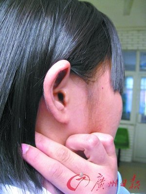 昨天下午,記者在廣州市中西醫(yī)結(jié)合醫(yī)院見(jiàn)到了小晴,她看上去精神有些恍惚,面部微腫,腹部有輕微皮外傷。醫(yī)生為她檢查了耳部后,診斷為“耳膜穿孔,嚴(yán)重程度中等”。