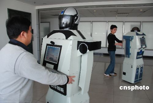 4月18日,濰坊(山東)安華智能公司工作人員展示“團(tuán)團(tuán)”“圓圓”智能機(jī)器人。由山東安華智能公司自主研發(fā)的一男一女兩款智能機(jī)器人身長分別為170、166厘米、體重各50公斤,男的名叫“團(tuán)團(tuán)”,女的名的“圓圓”。他們不但會(huì)跳舞,能自主靈活行走,并且具備與人交談、識(shí)別人臉和信息推介等諸多功能。據(jù)悉,“團(tuán)團(tuán)”“圓圓”將亮相第26屆濰坊風(fēng)箏會(huì),并承擔(dān)迎賓任務(wù)。 中新社發(fā) 孫樹寶 攝