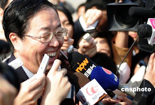中國共產(chǎn)黨第十七次全國代表大會10月21日上午在北京人民大會堂閉幕。大會選舉產(chǎn)生了新一屆中央委員會和中央紀(jì)律檢查委員會。圖為當(dāng)選新一屆中央委員會委員的央行行長周小川在大會堂外被記者“圍攻”。中新社發(fā) 任晨鳴 攝