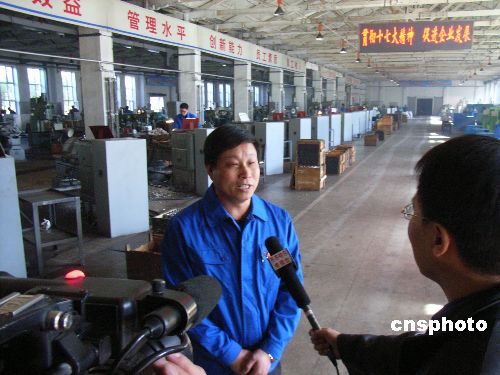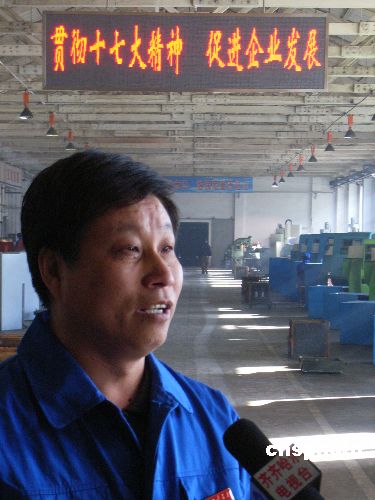 10月22日,齊齊哈爾建華公司黨委書記在接受采訪。當日,中國共產(chǎn)黨第十七屆中央委員會第一次全體會議勝利閉幕。國家老工業(yè)基地齊齊哈爾市的產(chǎn)業(yè)工人非常高興,中國兵器工業(yè)集團公司齊齊哈爾建華公司黨委書記谷云龍代表全體員工表示:堅決擁護十七大的各項決議,擁護新一屆中央領導集體,緊密地團結(jié)在黨中央周圍,不斷增強自主創(chuàng)新能力,為國家發(fā)展,社會和諧人民進步多做貢獻。中新社發(fā) 王云龍 攝