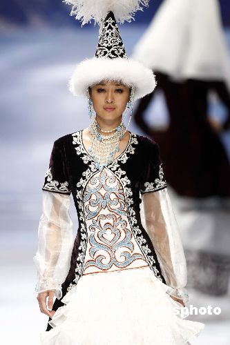 十一月四日,2007年中國國際時(shí)裝周在北京繼續(xù)進(jìn)行,在新疆服裝設(shè)計(jì)師孫秀琴時(shí)裝專場發(fā)布會(huì)上,設(shè)計(jì)師用質(zhì)樸的服裝語言為觀眾呈現(xiàn)了新疆優(yōu)美、燦爛的民族服飾文化。中新社發(fā) 盛佳鵬 攝